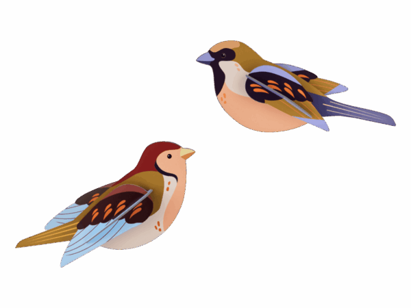 Havefugle kvidrer omkring os, hakker på nogle krummer, kigger omkring og flyver så væk. De tilføjer farve til vores dagligdag. Disse papfugle flyver ikke væk, og kan få et dejligt sted på din væg.